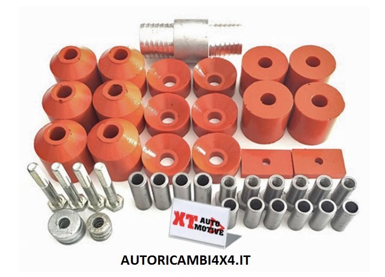 The kit allows you to raise the body by 4.5cm (recommended measurement) allowing the fitting of larger tyres without running the risk of cutting them in the wheel arches.
