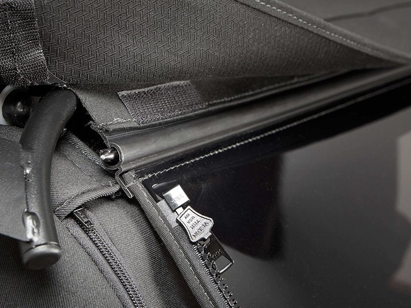 la nuova versione PLUS con sistema zipperless permette anche di togliere i vetri laterali e posteriori in modo PIU' VELOCE di trasformarla in BIKINI.