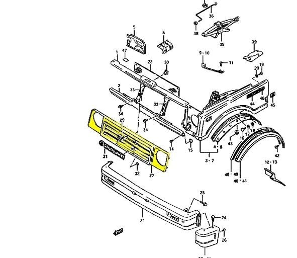 Suzuki Samurai mask complete with grille compatible with all Suzuki Samurai and Sj of any year and model.